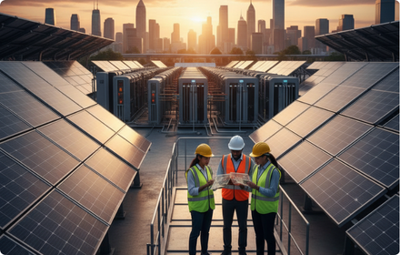 Integrate battery storage and load optimization systems for reliability and 24×7 green power.